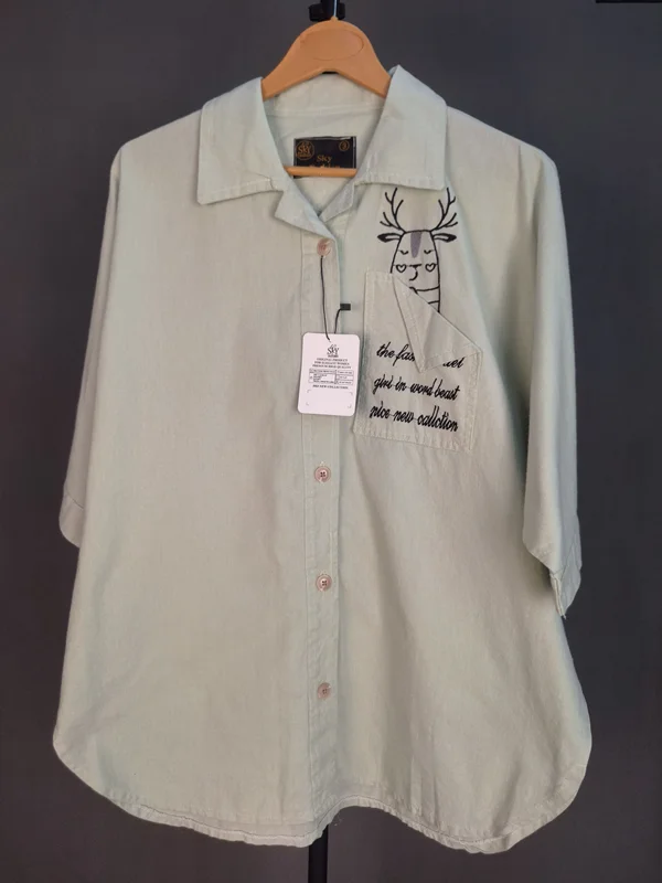 شومیز گلدوزی شده درجه یک آستین کیمونو سه تا سایز داره ، سایز یک : قد کار ۵۹ عرض سینه ۶۷ / سایز دو : قد کار ۶۲ عرض سینه ۷۰ / سایز سه : قد کار ۷۲ عرض سینه ۷۳