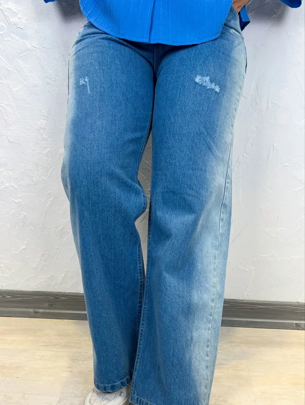 شلوار جین واید رادو دار ،کناره های شلوار رنگ روشنه ، قد ۱۰۰ ، دور کمر کش کار شده اندازه ها بدون در نظر گرفتن کشسانی اندازه گیری شده که تا ۱۰ سانت کش میاد ، سایز ۳۰ : دور کمر ۶۲ دور ران ۶۰ / سایز ۳۱ : دور کمر ۶۶ دور ران ۶۰ / سایز ۳۲ : دور کمر ۷۰ دور ران ۶۲ / سایز ۳۴ : دور کمر۷۶ دور ران ۶۴ / سایز ۵۰ : دور کمر ۷۸ دور ران ۶۸