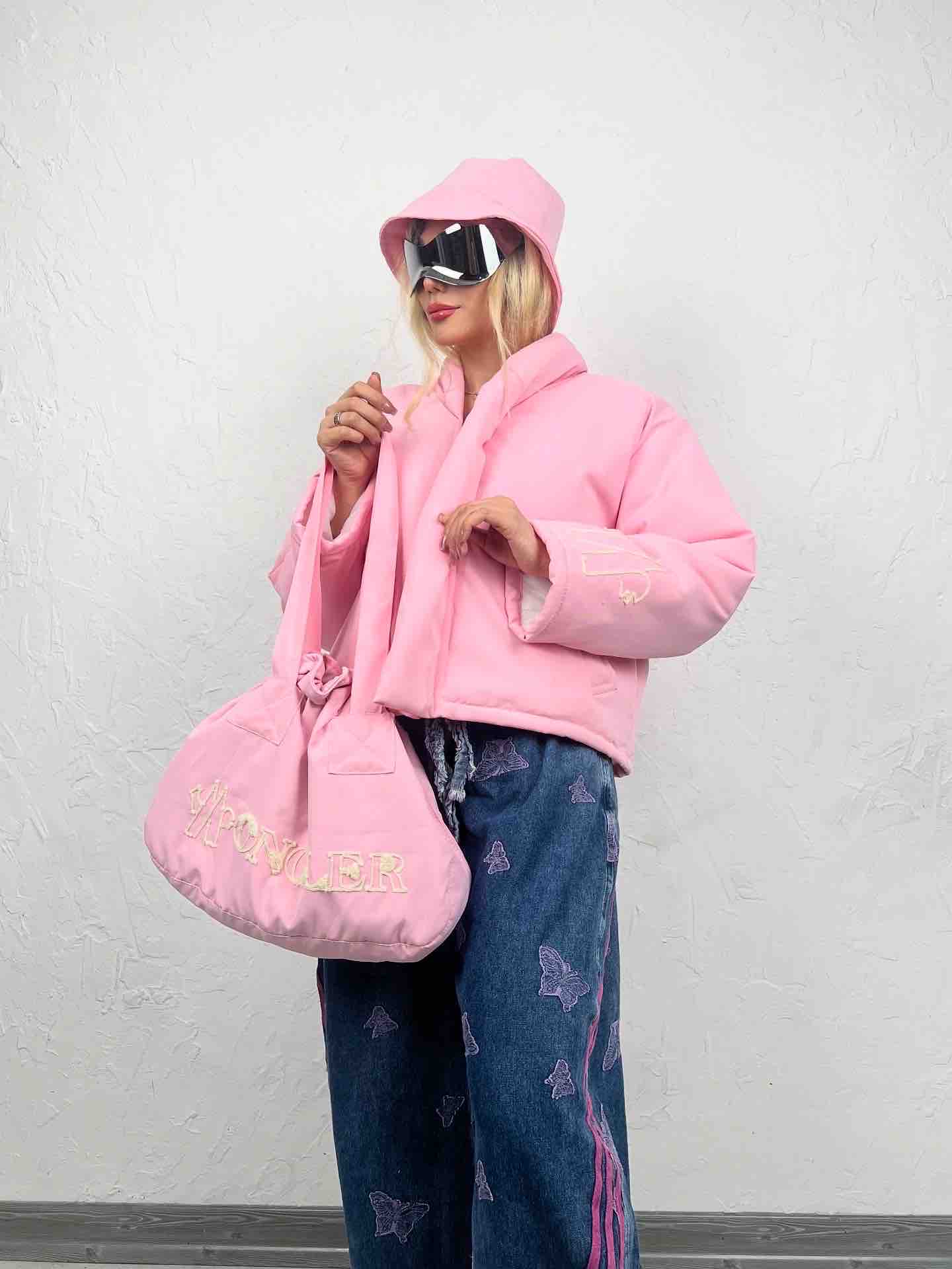 ست ۳ تیکه <<کاپشن،کلاه،کیف>>قد۵۵عرض۶۲